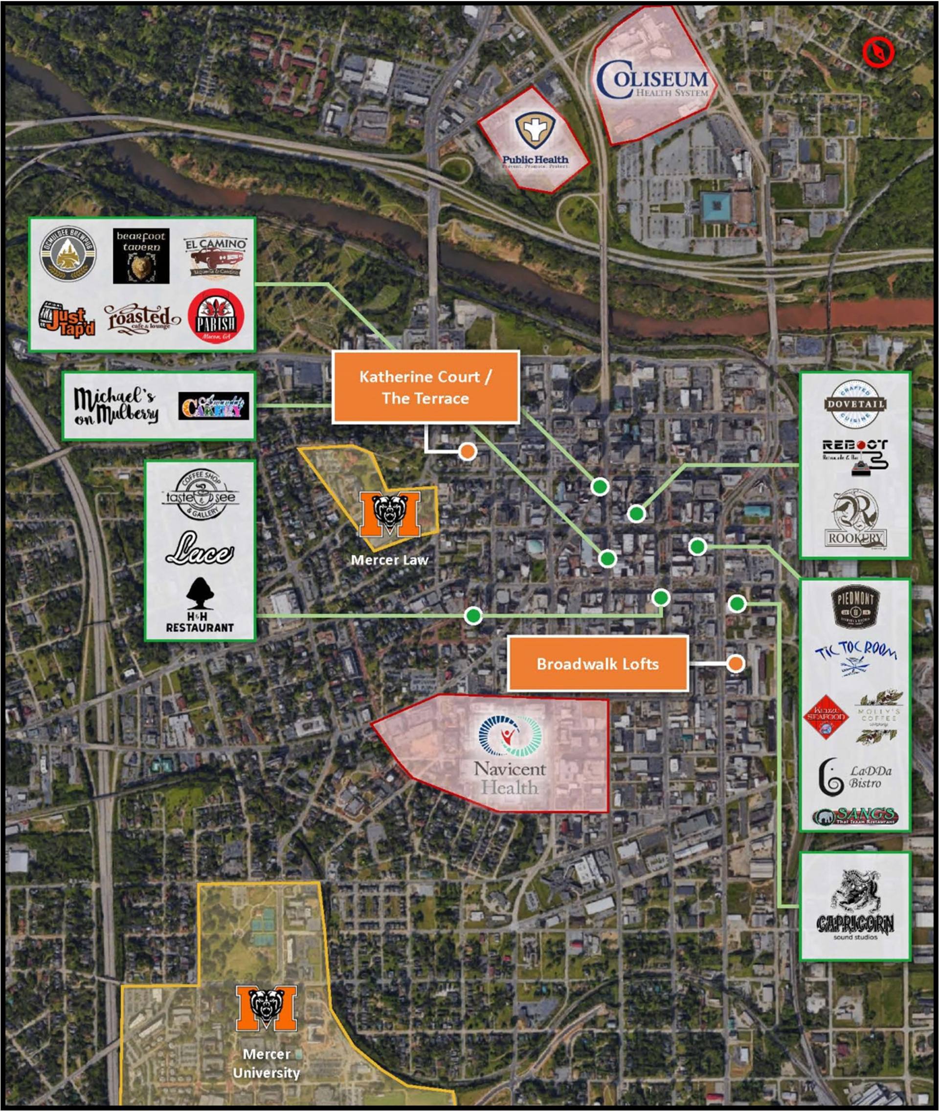 - Located in downtown Macon, which accounts for a quarter of the region’s jobs.