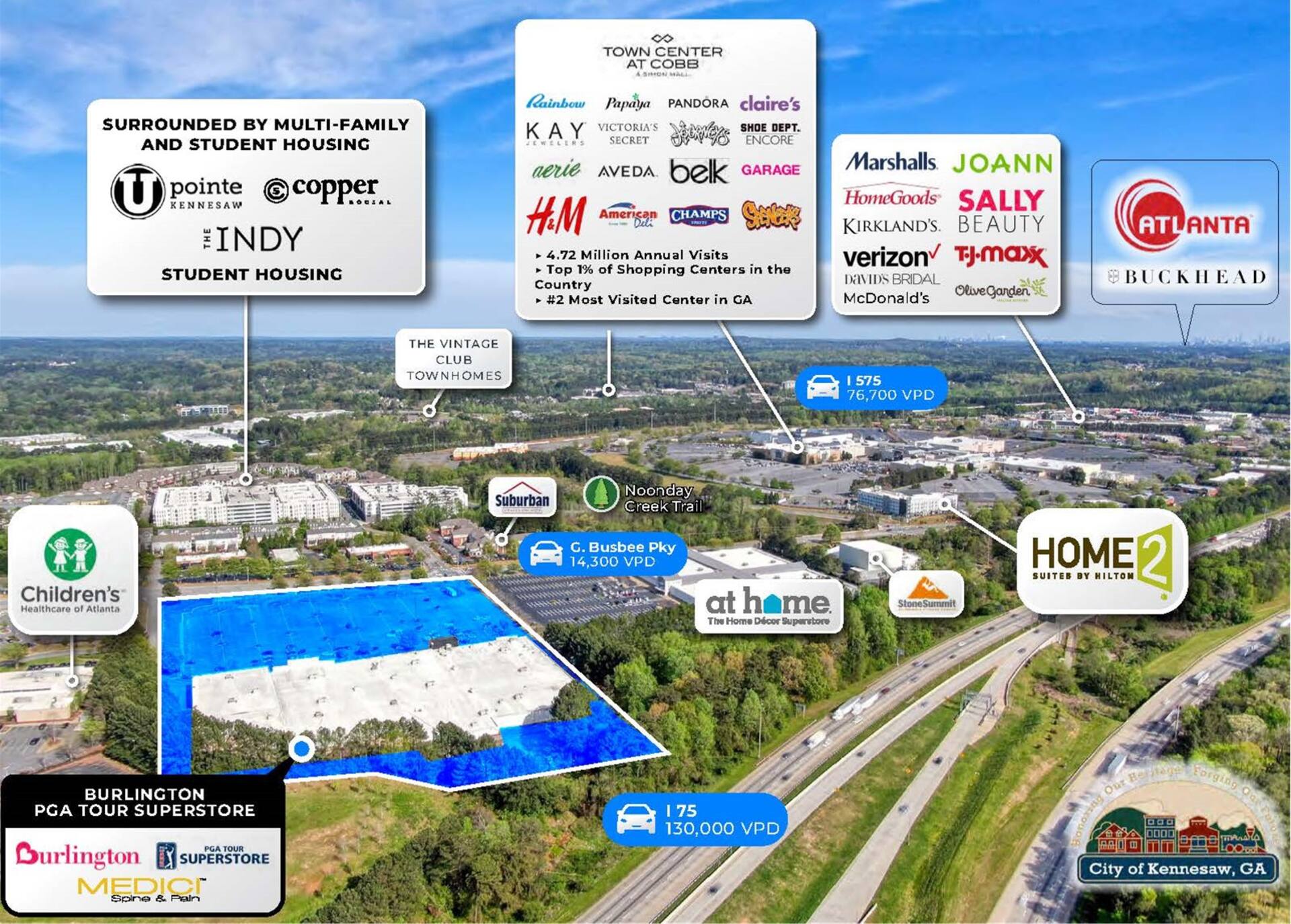 Noonday Creek Crossing (“the Property”) is a 153,486 SF retail property located at the signalized intersection of George Busbee Parkway NW and Grace Street in Kennesaw, GA. It was built in 1996 and renovated in 2005.