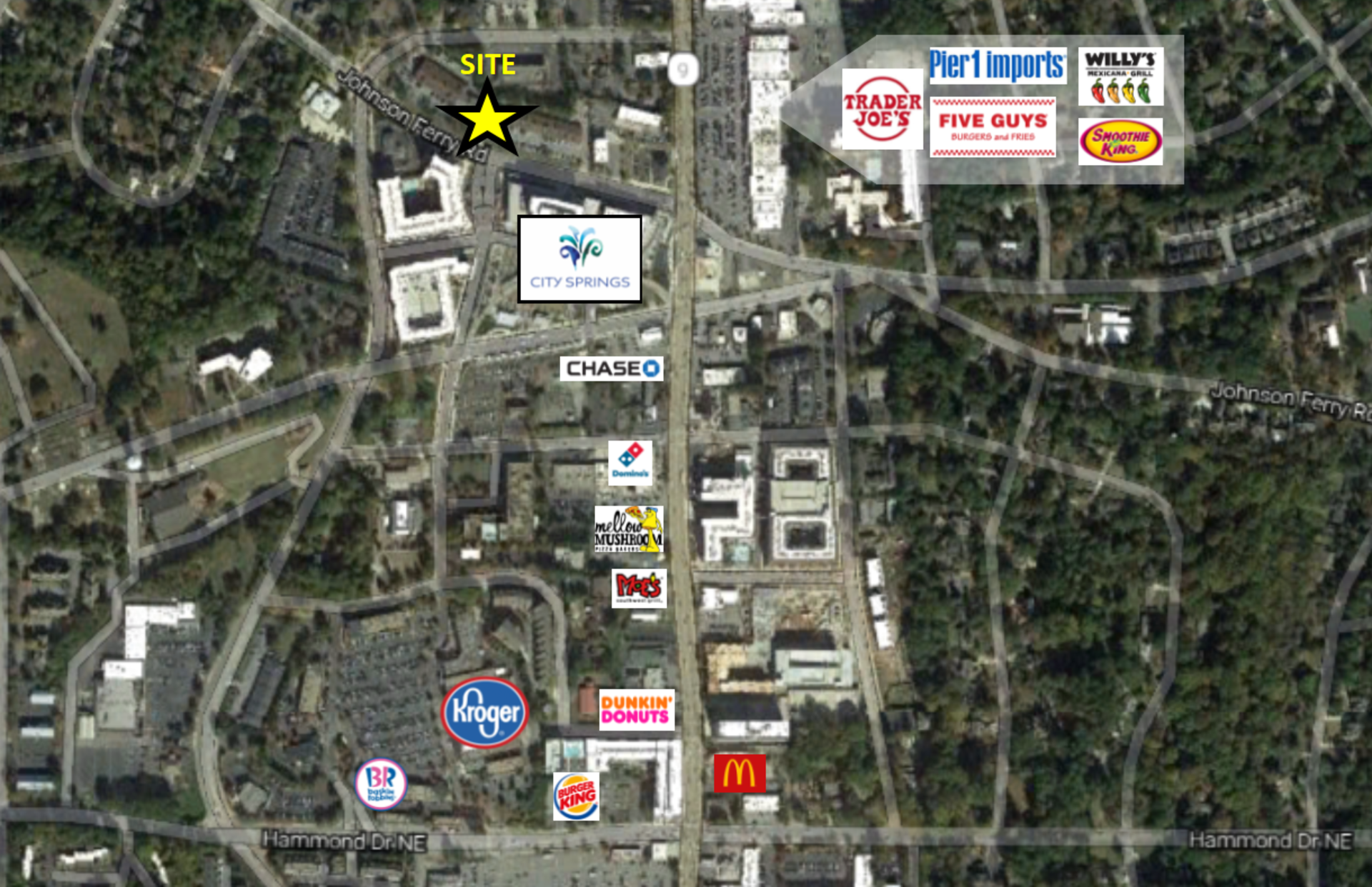 Excellent ingress/egress and visibility from Johnson Ferry Road.